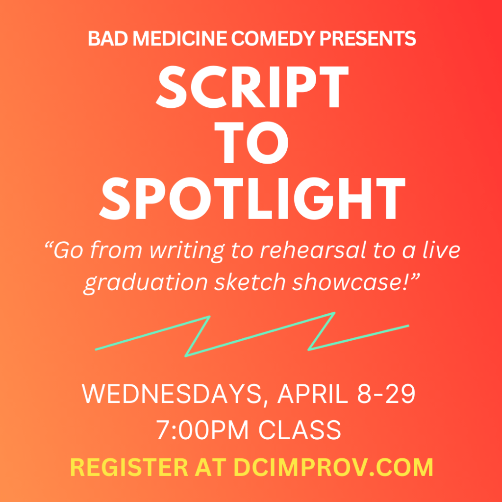 Interested but can’t join now? Email info@dcimprov.com with the course in the subject line to get updates on new sessions. Looking for Sketch Comedy Workshop Resources? Click here.