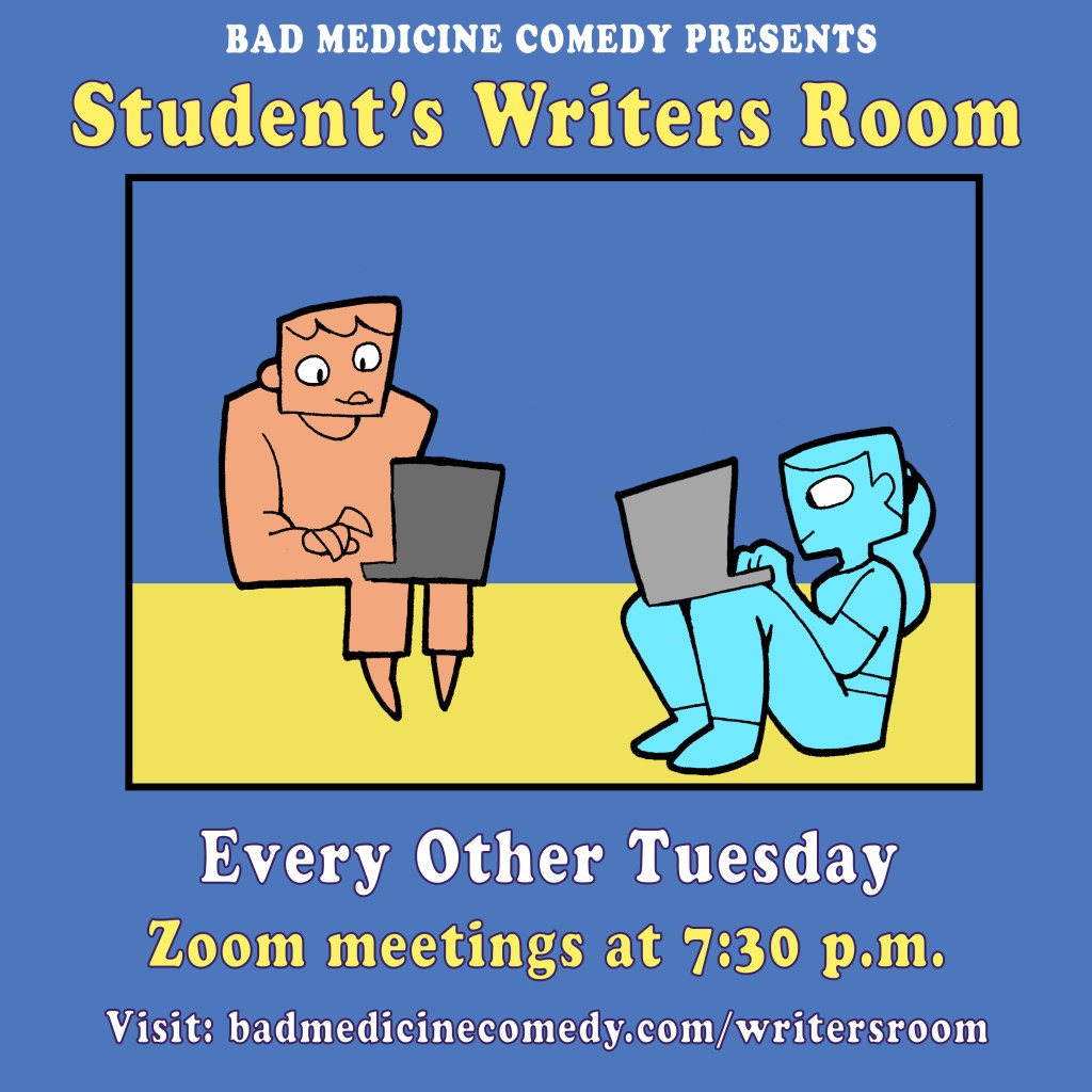 UPDATE: The Student Writers Room has been retired. Thank you to everyone who has ever joined us for a meeting. In the meantime please check out the Sketch Comedy Lab, our new monthly writers room. We hope you can join us again soon!